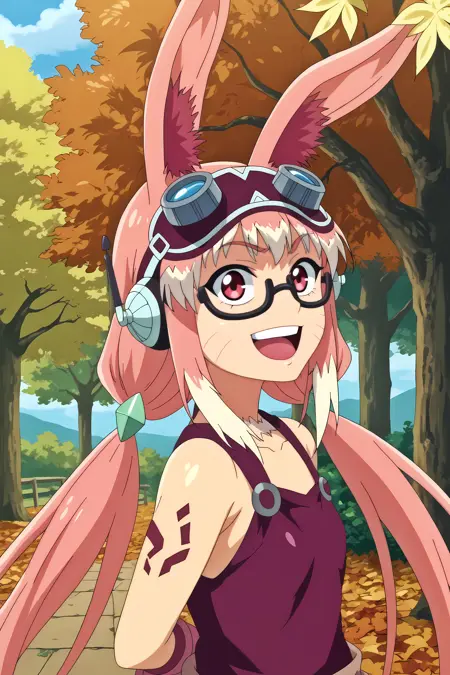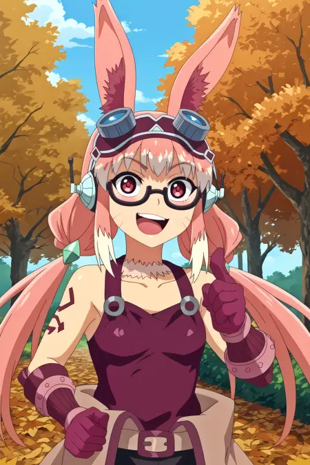 トリガー:mithlim netherland,1girl,solo,animal ears,gloves,googles,pink hair,rabbit ears,long hair,glasses,twintails,open mouth,smile