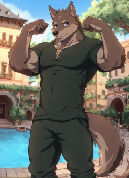 캐릭터처럼 보이게 하려면 근육질의 남성 또는 bara와 같은 프롬프트를 사용하는 것을 추천합니다.