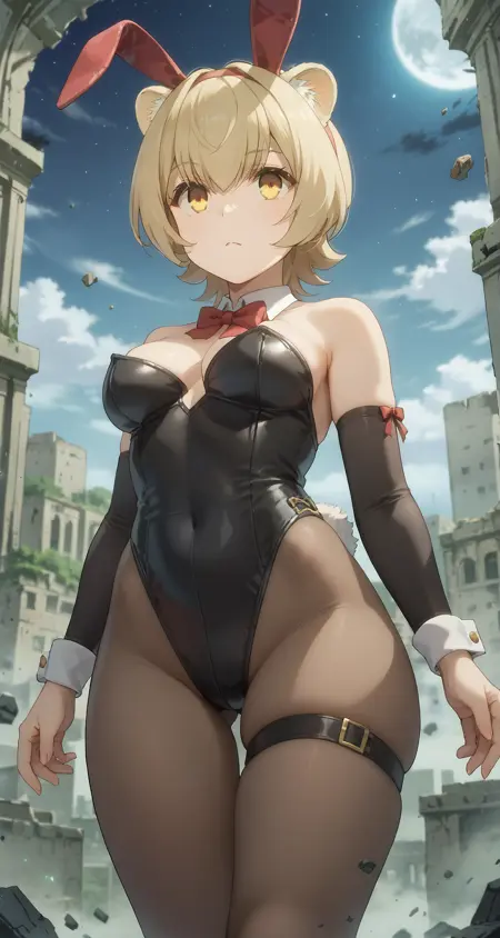 Character: rifana_chan, short hair, blonde, bangs, hair between eyes, animal ears, yellow eyes,