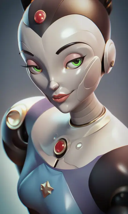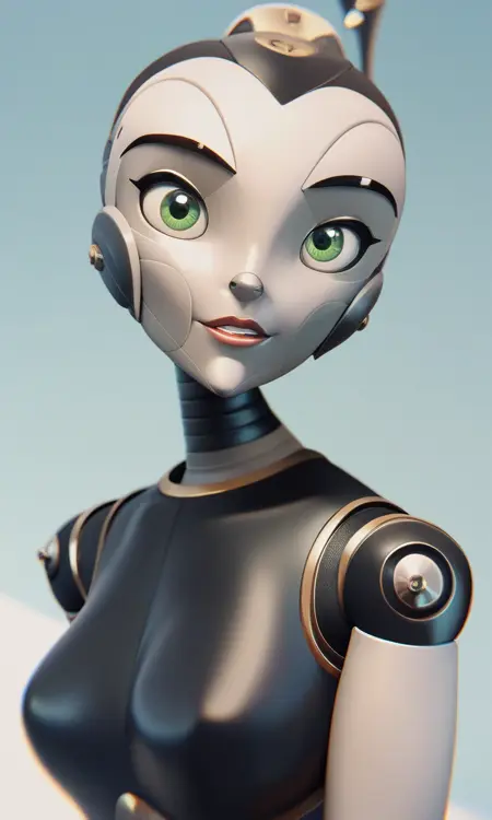 Cappy, female, robot, green eyes