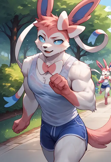 注意: Sylveonの男性バージョンを生成する際、訓練データが女性に偏っているため、男性タグを付けていても女性が生成されることがあります。これを修正するには、「pecs」やその他の男性タグを追加してください。例: muscular male, ((male)), (1boy), slim male など...
