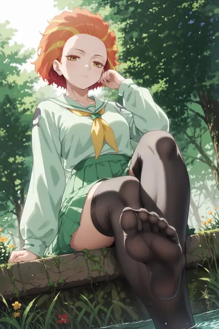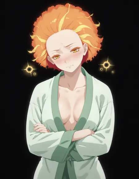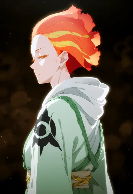 第二次仅看她的长袍:zhu jin地獄楽,solo,橙色头发,金色头发,多彩头发,1个女孩,黄眼睛,红色头发,绿色长袍,长袍