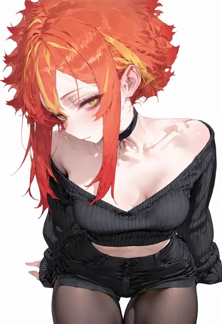 zhu jin地獄楽,solo,橙色头发,金色头发,多彩头发,1个女孩,绿色外衣,黄眼睛,红色头发,外衣,白色连帽衫,首饰,hagoromo