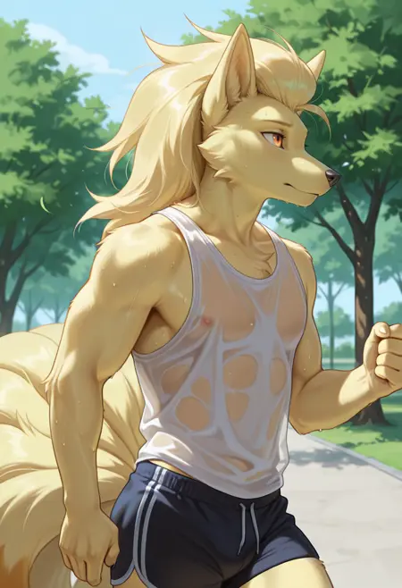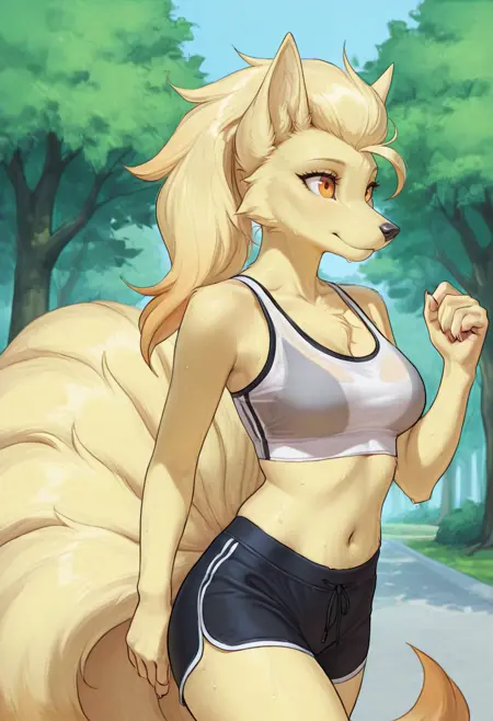 참고: 트레이닝 중 자주 등장한 캐릭터가 후면으로 단발머리(ปอนต์เท일)를 묶고 있었고, 그 결과 가끔 Ninetales의 머리카락이 단발머리로 생성됩니다. 제가 찾은 가장 간단한 해결법은 네거티브에 "ponytail" 태그를 추가하는 것입니다.