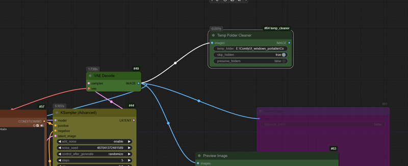 之后,您可以在工作流末尾添加“临时文件夹清理器”节点,并将图像输出连接到它。该节点将: