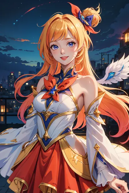 星之守护者瑟菲莉:星之守护者瑟菲莉,金发,橙发,多色发,多色服装,连衣裙,发带,飘逸袖子,魔法少女