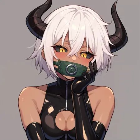 • Prompt****: gag, gagged, gag harness, muzzle, mouth mask, covered mouth,