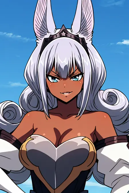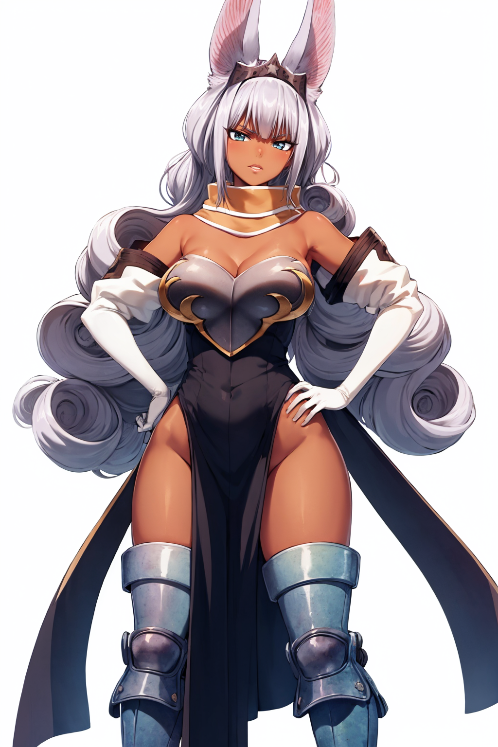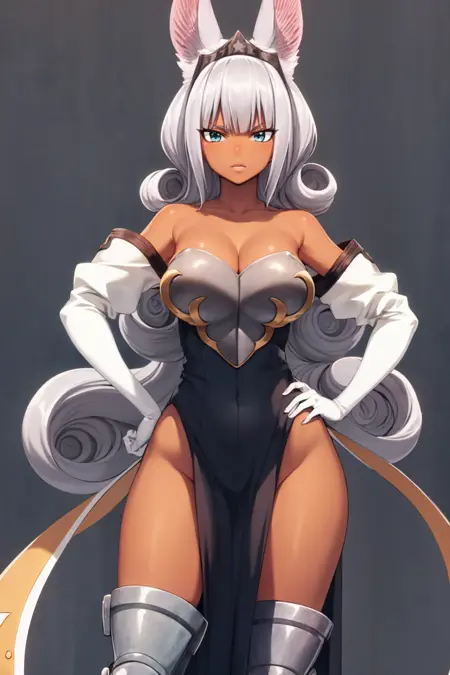 기본 프롬프트: 1girl, ftdgswa, grey hair, long hair, curly hair, blue eyes, dark skin, bat ears
