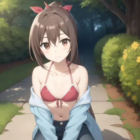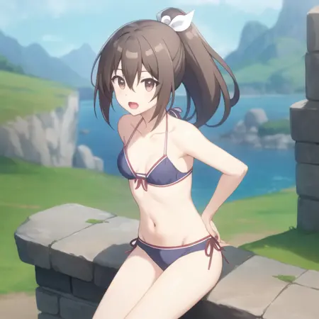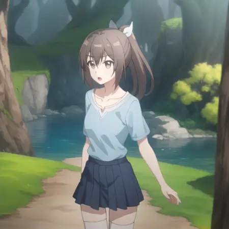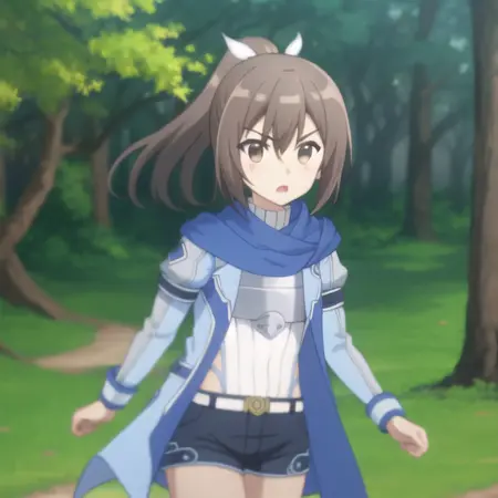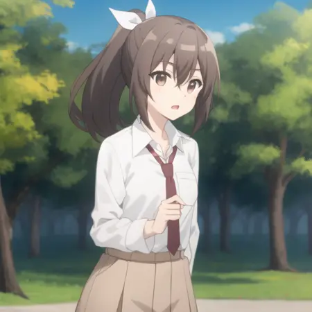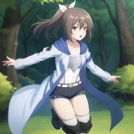 트리거 단어: bofuri-sally, 흰 레오타드, 단축바지, 학생 유니폼, 파자마, 스카프
