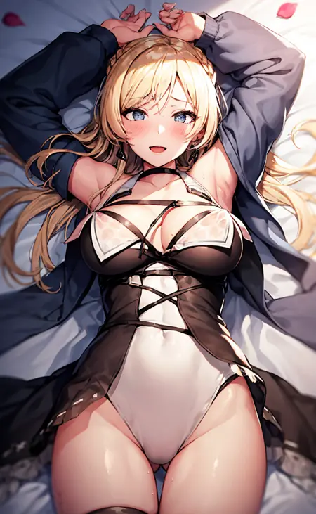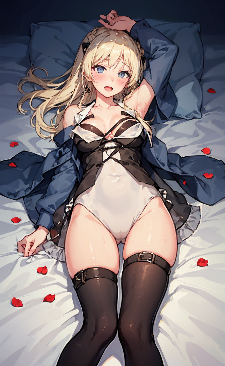 2.OG コスチューム: 白いレオタード、頬の赤み、長袖、つま先なしのレッグウェア、ドレス