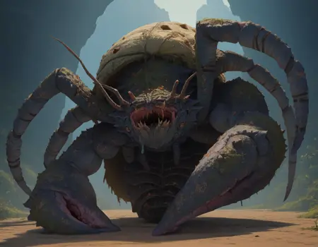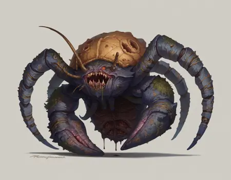 成人男性と同じほど背が高く、钳は巨大なハサミのように人間を切断できる。彼らは、はるかに大型で希少なリヴァイアサンの遠い親戚である。知られた生息地では比較的よく見られるため、プロメテウスはアンデッド海賊艦隊の標的とされ、殺害された後、復活させられて戦闘部隊の一員として迎え入れられる。これは、乗馬として、あるいは単独の怪物戦士としてである。」