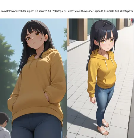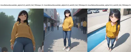 目前网上一些LoRA/概念模型会极其执着地根据其训练方式强制角度。我创建这个模型,正是因为所有“从下方”类型的LoRA都过于固执。
