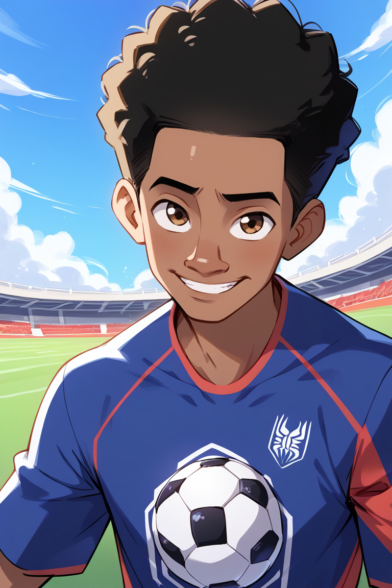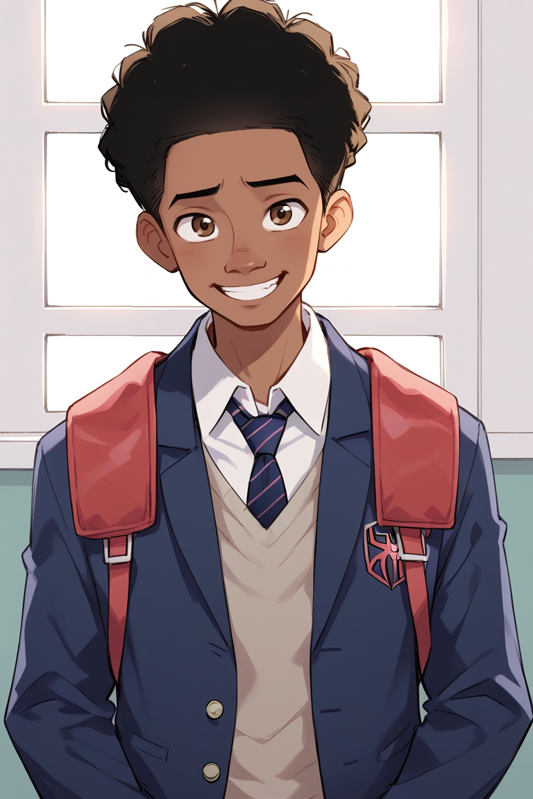 트리거 단어: miles morales, 검은 머리, 검은 피부, 검은 피부를 가진 남성, 갈색 눈