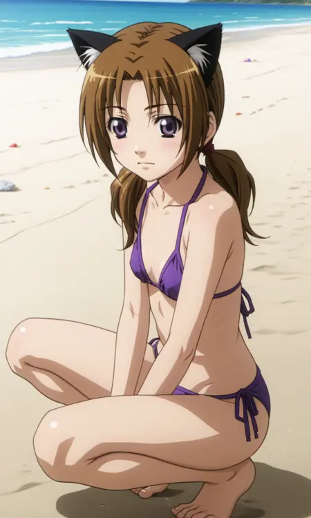 ichika, 1girl, purple eyes, brown hair, twintails, cat ears, cat tail,