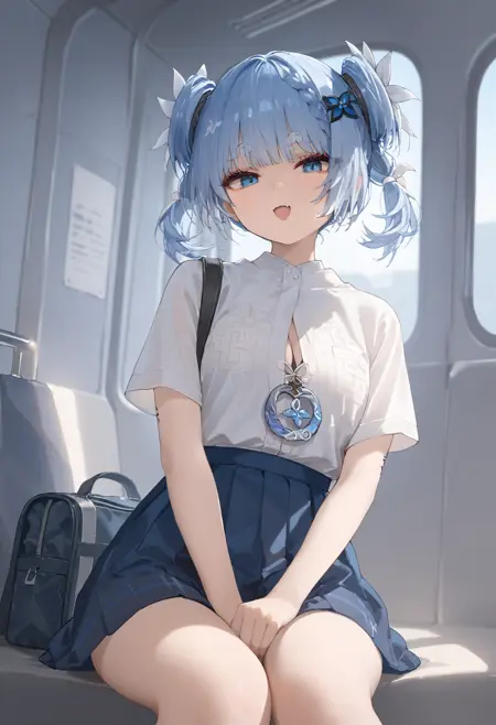 blue eyes, gloves, blue hair, braid, sleeveless, bangs, short eyebrows, hair ornament, double bun, mini hat, arm tattoo, black gloves,