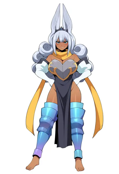 基础提示词:1girl, ftdgswa, 灰色头发, 长发, 卷发, 蓝眼睛, 深色皮肤, 蝙蝠耳朵