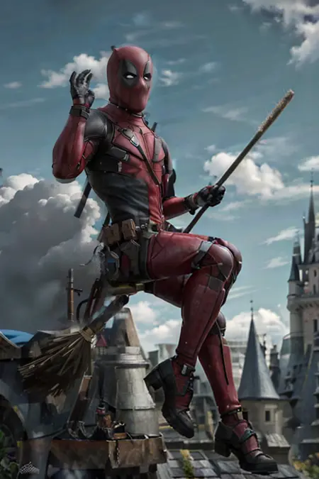 Witchが掃除棒に乗っている画像を生成するためのCannyと深度マップを使用します。キャンバスサイズは512×768または512×512です。必要に応じて重みを調整してください。0.5~1が適切です。