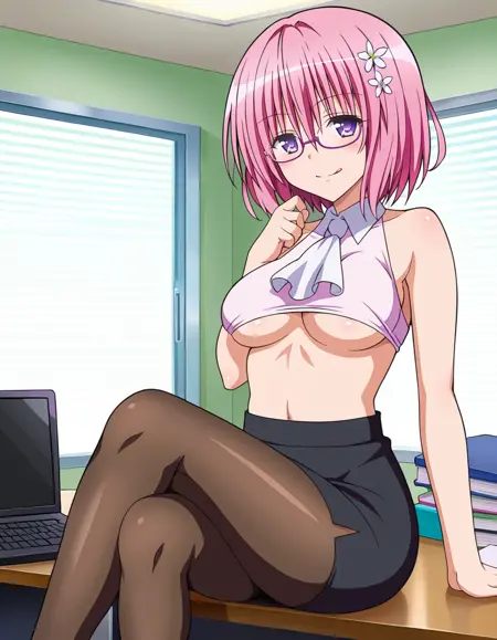 整体形象:momodevil,To Love-ru,momo velia deviluke,鲍伯头,短发,粉发,紫眼,中等胸围,鲜艳色彩,柔和色系,亮粉发,