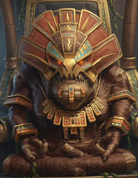LordKroak, monster, jewelry, bandages, sitting, chair,