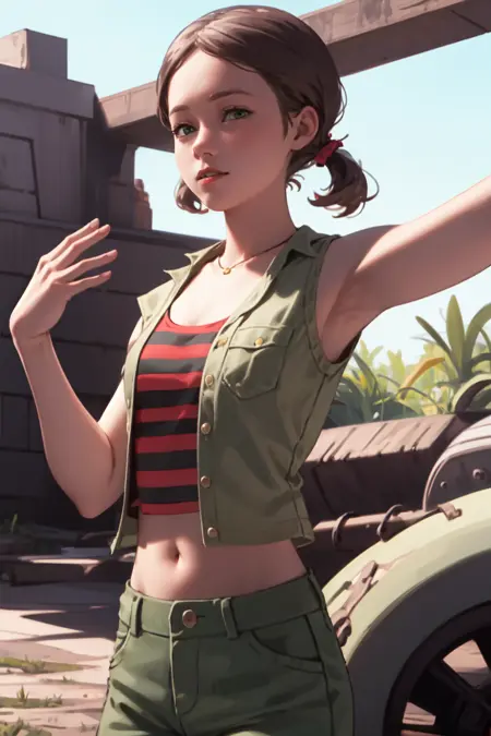 Telltaleの『ジュラシック・パーク:ザ・ゲーム』に登場するジェス・ハードリングのスクリーンショット、プロモーション素材、コンセプトアートで学習されたLoRA。