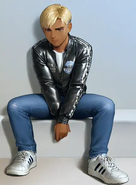 blonde_hair - black_hair - brown_hair - short_hair - very_short_hair - buzz_cut - spiked_hair - undercut - fade_(haircut) - toned_male - bara - yaoi - hoodie - jeans - t-shirt - print_shirt - tank_top - shorts - boxer_briefs - sneakers - pool - male_swimwear - swim_briefs - swim_trunks - bedroom - outdoors