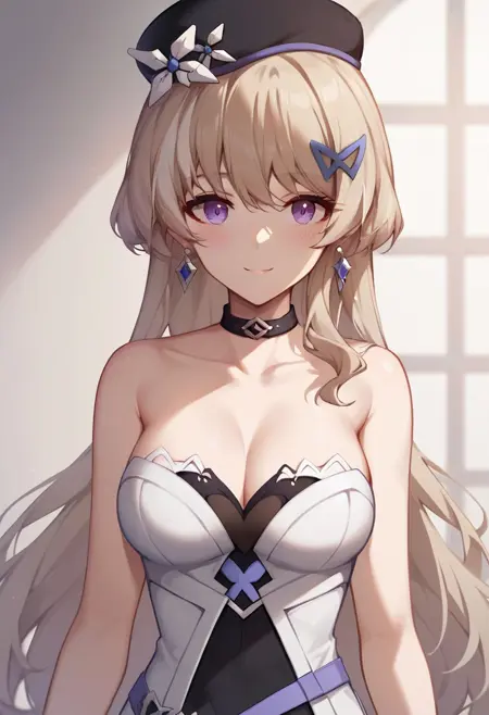 ana_schariac, 1girl, solo, long hair, bangs, purple eyes, breasts, ash blonde hair,