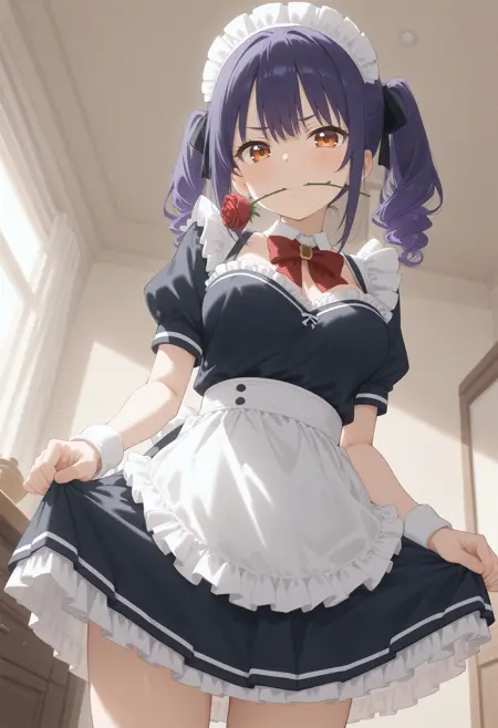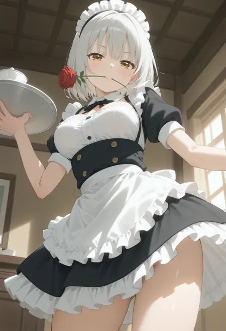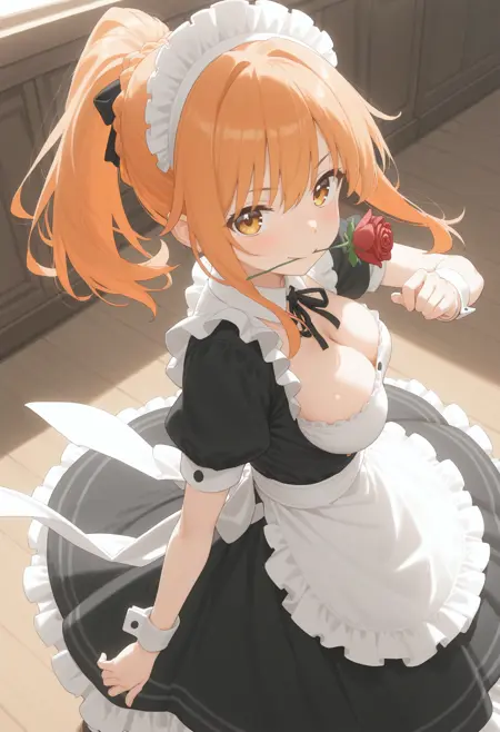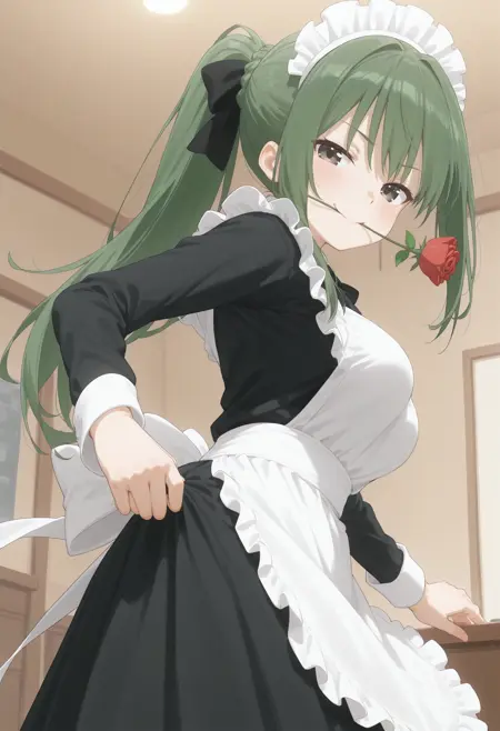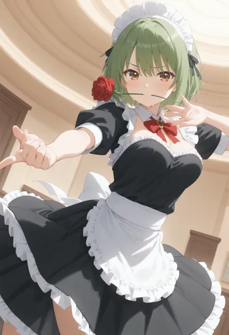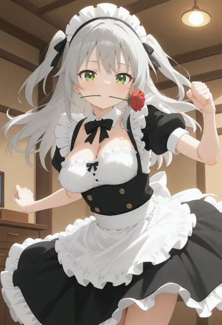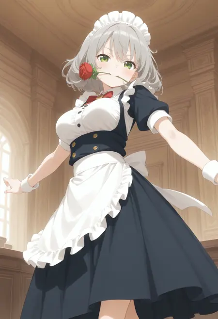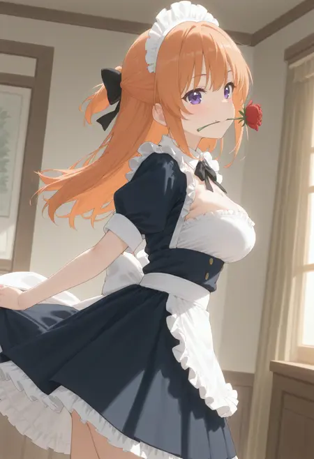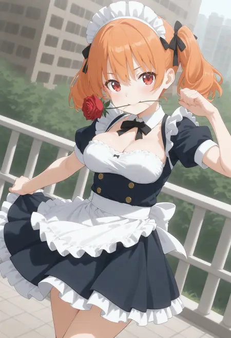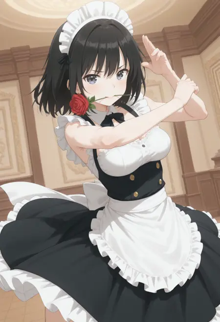 口に薔薇の茎を横向きで咥えるLoRAです。