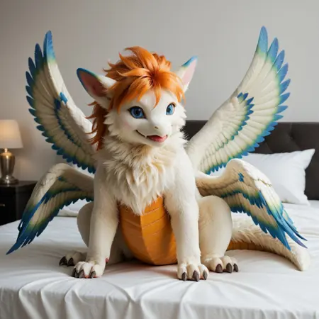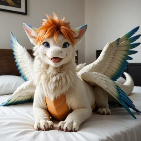 추가 프롬프트: 드래곤, 털 난 드래곤, 깃털 날개, (네 개의 날개:1.5), 색상 끝날개, 꼬리, 발톱