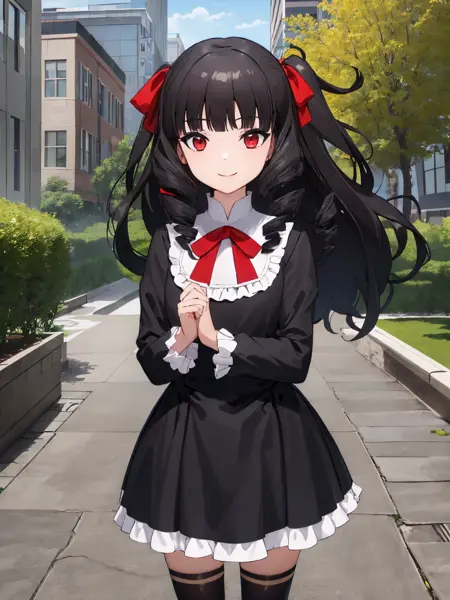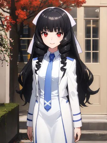 아야코스쿨, 검은 머리, 긴 머리, 드릴 머리, 붉은 눈, 흰색 머리 리본