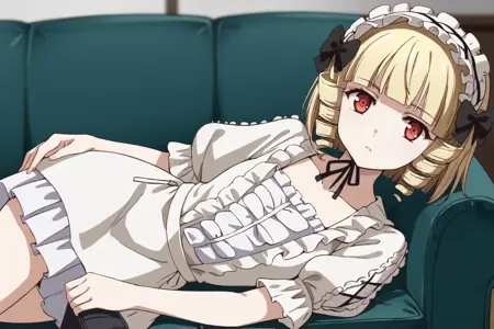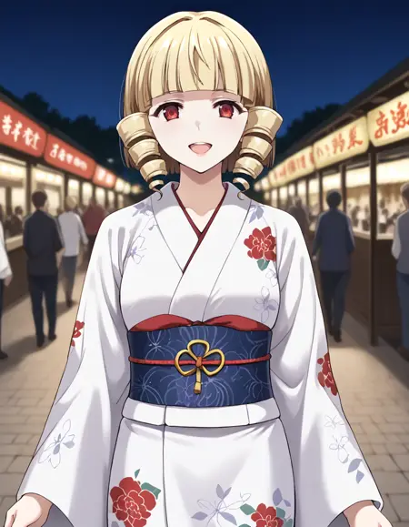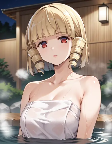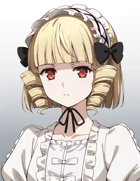 타치바나 카나, 금발, 드릴 헤어, 단발, 둔한 앞머리, 빨간 눈