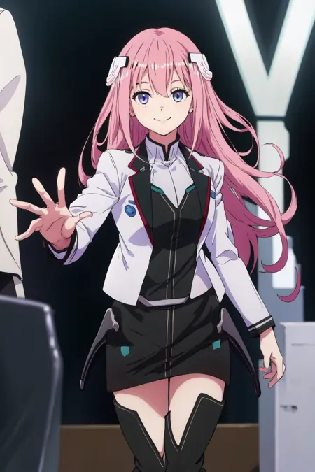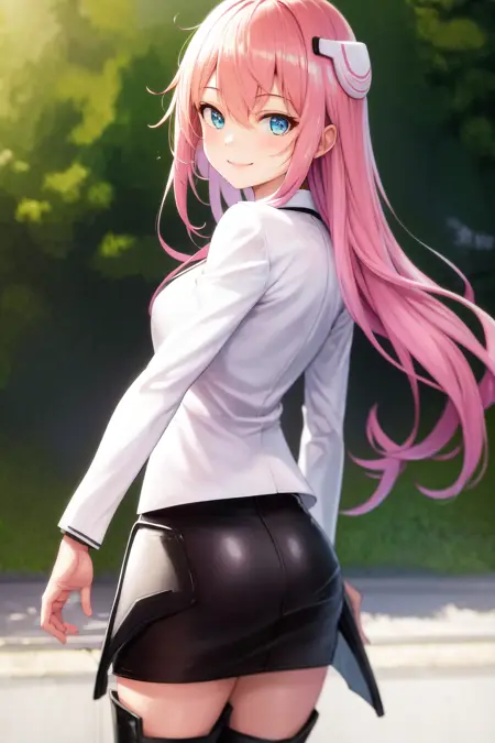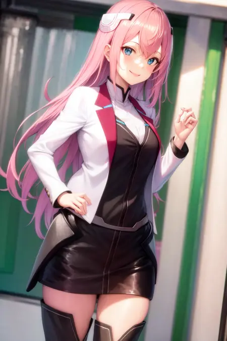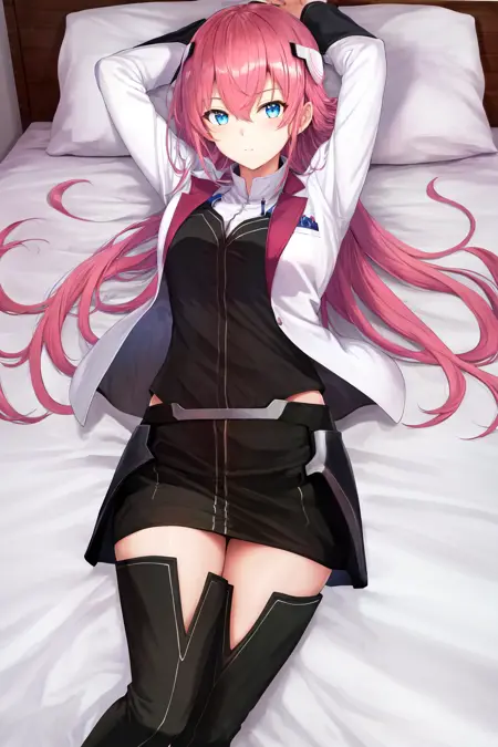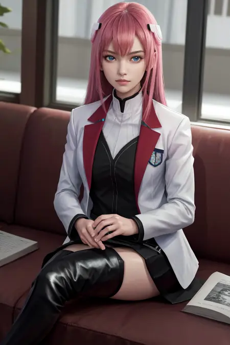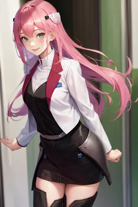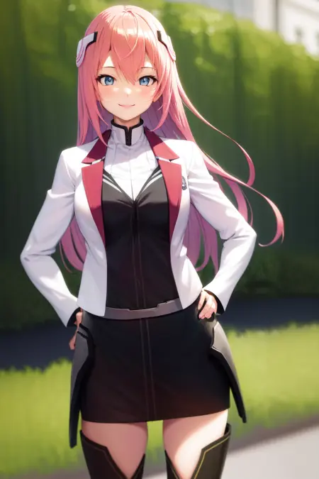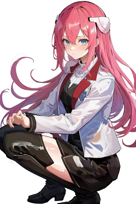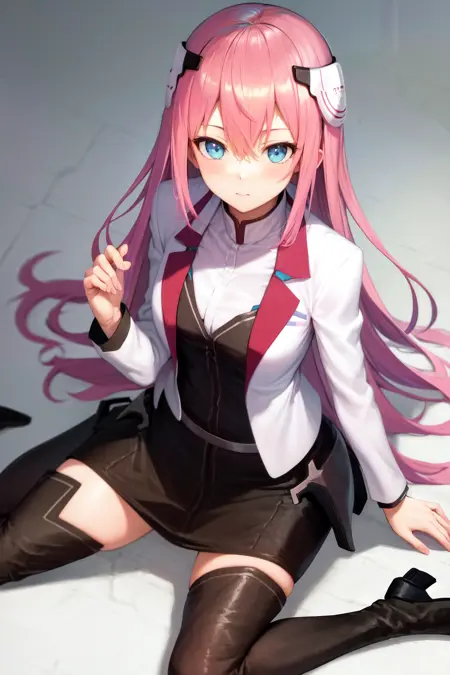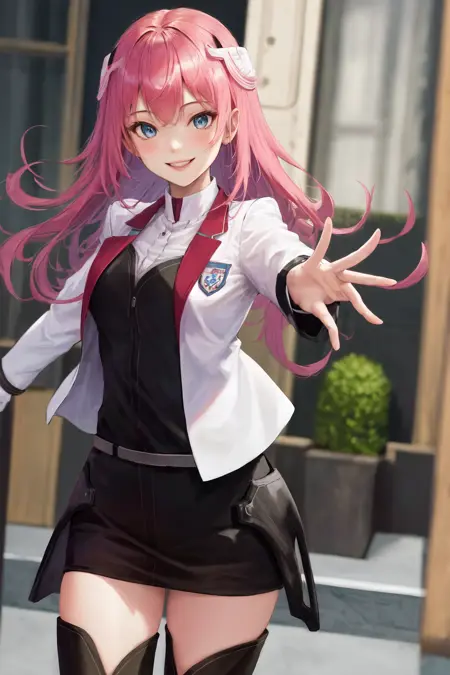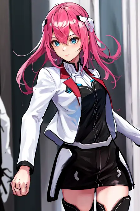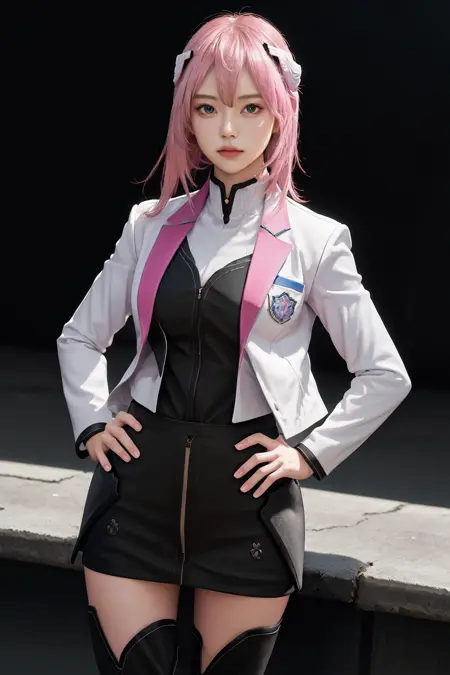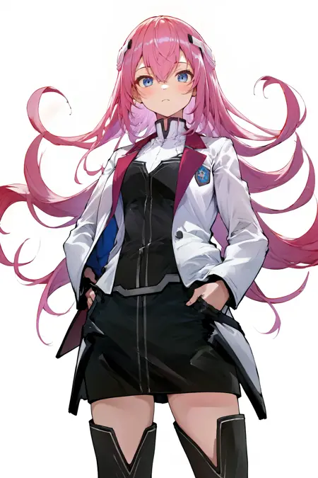 기본 옷차림: 학교Uniform 흰색 재킷 긴 소매 검은 치마 허벅지 부츠