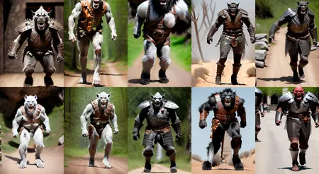 Trolloc 关键词将生成一个典型的有角Trolloc。你可以自定义其 身体、狼鼻或野猪鼻,并能良好响应以下特征: