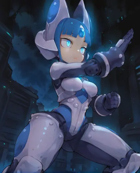 MechaGirl, 파란 눈, 파란 머리 또는 짙은 파란 머리, 둔한 앞머리,