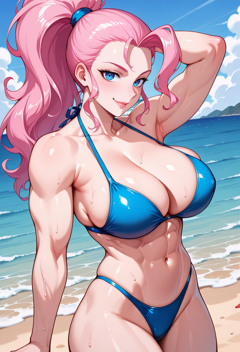 キャロルの色:パープル cboutfit、ピンクの髪、青い目