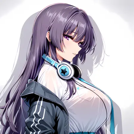 激活标签为:"jin_bora, long hair, hair ornament, purple hair, bang, purple eyes"。自动标签器严重将她的胸围标记为“large”和“huge”,因此使用 "large breasts" 和 "huge breasts" 均有效。