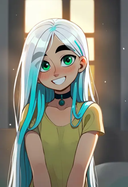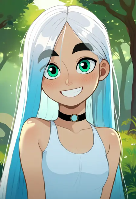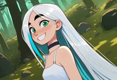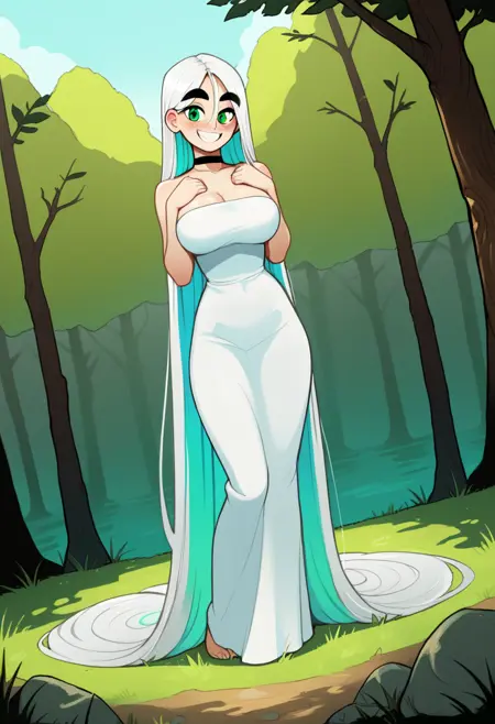 - Aisling_Gnsisir, (multicolored hair, silver hair,), very long hair, very green eyes, pale skin, white skin, thick eyebrows, 1girl,