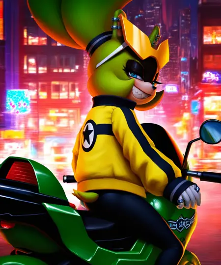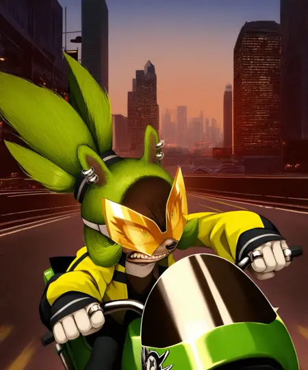이번에는 캐릭터 프롬프트를 조금 더 상세하게 수정하여, 더 사실적인 체크포인트에서도 더 나은 결과를 얻을 수 있도록 했습니다. 그 외의 사소한 변경 사항으로는 안경을 눈보안경으로 대체했습니다. 학습 과정에서 오토바이를 항상 노랗게 만들려고 했기 때문에 녹색 오토바이로 태그했습니다. 또한 단순히 로고가 아니라 별 로고로 명시했습니다. 자전거와 로고는 여전히 개선이 필요하지만, 다음 버전에서 수정해보겠습니다. 다만 자전거와 로고는 이전의 Dynamo 요소만큼이나 중요하지는 않습니다.