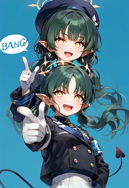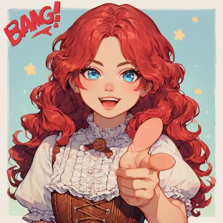 一个用于生成手指枪姿势并带有气泡对话框“BANG”的LoRA。