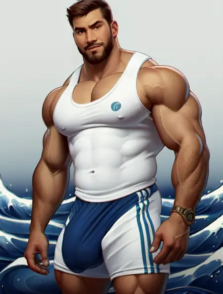 Positive prompt : (1man), muscular, brown eyes,(intricate details, Masterpiece, high quality, best quality)