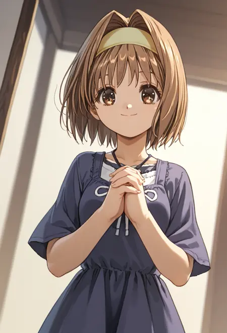 s_k4h0, short hair, brown hair, brown eyes, hairband