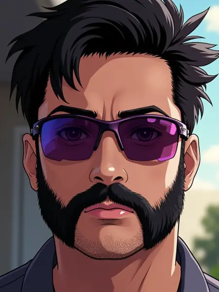 - Zebo:real_toonzebo man,棕褐色皮肤,波浪发,轻度山羊胡,剃净下巴,棕褐色皮肤,胖