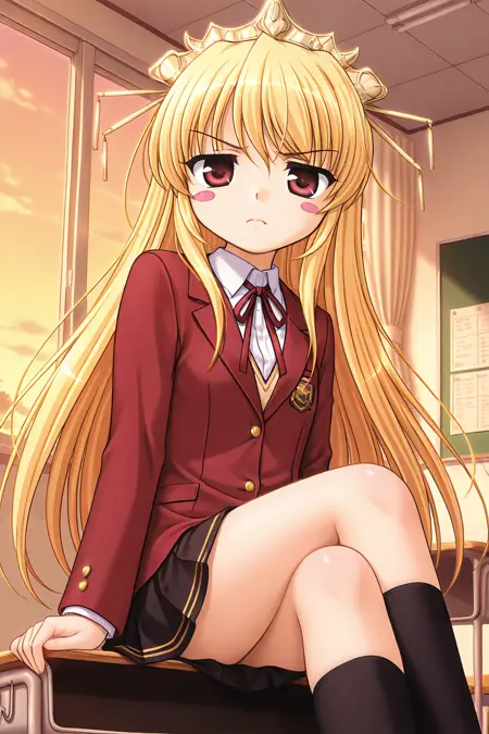sendou kaya,red eyes,blonde hair,very long hair,hair between eyes,sidelocks,