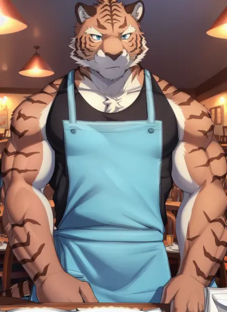 建议使用“肌肉男性”或“bara”等提示词,以使生成效果更接近角色形象
