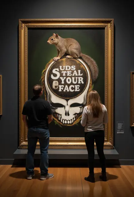 这条分为13个尖端的闪电,代表着一种破碎而强烈的感觉;而骷髅头——常与感恩死者乐队关于死亡与超越的主题相关联——则增添了黑暗而神秘的气质。多年来,随着粉丝们将“Steal Your Face”视为感恩死者乐队自由、即兴与灵性精神的视觉代号,这一标志获得了新的生命力。1976年现场专辑《Steal Your Face》的封面使其广为流行。自那以后,它已成为“Deadhead”粉丝社群的有力象征,代表着对乐队音乐的忠诚以及永不停歇的探索精神。