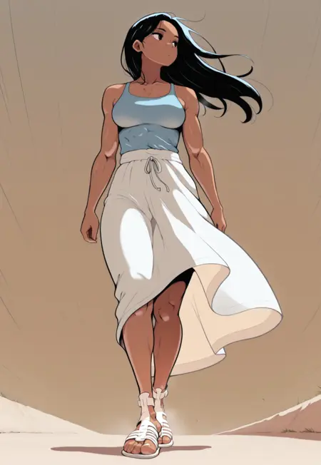 权重可调,1.0即可正常使用,但在远景中可能需要提高权重,而在特写镜头中若允许一定风格随机性,则可降低权重。使用 "greeksandals" 作为触发词,为保险起见可额外添加 "sandals",并根据Booru标准使用 "
