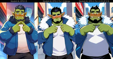 0.75와 1.0을 각각 50/50으로 병합하고, NoobAI-XL EPS 0.5의 CLIP을 사용한 버전과 병합하세요.
