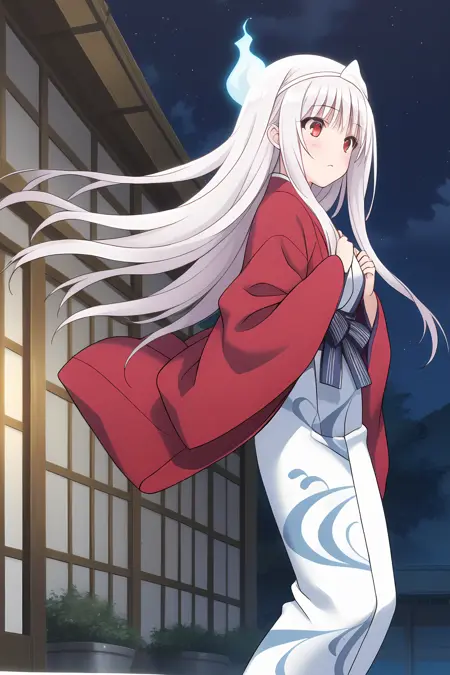 ys-yuuna, hitodama, ghost, 삼각형 머리 장식