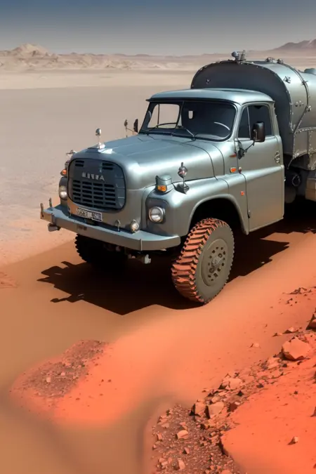 Experiment with weights around 0.7+, CLIP SKIP 1-2. The model works with a truck tatra148 token (it will propagate the style on other types of cars too).