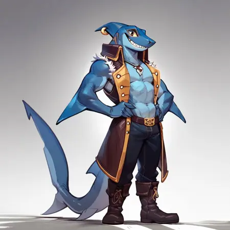 斯莱德,鲨鱼,男性,毛茸茸,蓝色身体,双色身体,黄色眼白,臂鳍,鳃