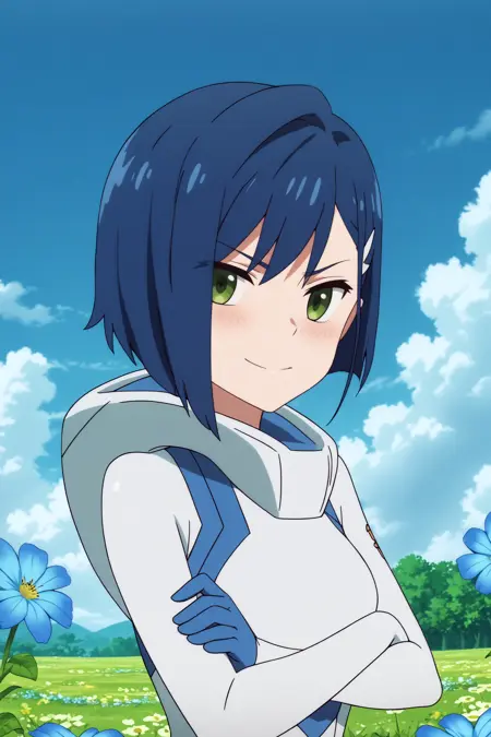 ボディスーツ:ichigo,1girl,solo,short hair,bodysuit,pilot suit,white_bodysuit,gloves,,hair ornament,hairclip